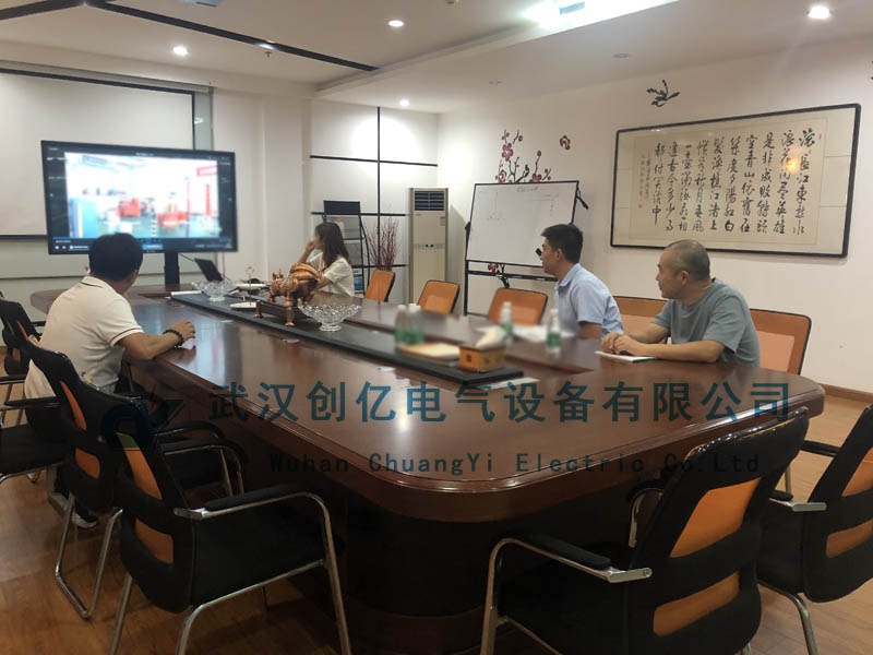 隨后一同前往生產車間詳細了解我們的生產流程、裝配過程、質檢程序等內容。在生產車間,我們的技術員對其客戶感興趣的CYTF系列串諧試驗裝置做了實地演示。