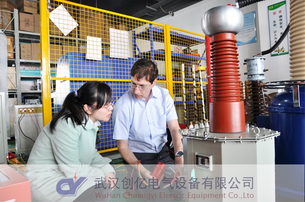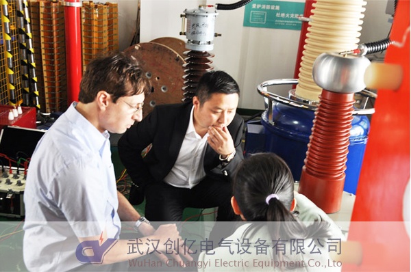 他們此行主要目的是考察串聯諧振和變壓器類系列產品,針對Lalit告知其被試品是發電機,需要對其做局放耐壓試驗。要滿足發電機單相對地時做耐壓試驗,又滿足三相一起做耐壓試驗。通過與客戶進行詳細深入的技術溝通后,最終給客戶選定1200kVA/60kV工頻串聯諧振試驗系統。Lalit也非常贊許!隨后他還詳細看了超低頻、回路、互感器等設備,并一一為其做了演示試驗。在考察的過程當中他們都聽得特別認真仔細,還生怕漏掉了哪個環節,時不時拿出相機來拍照,做錄