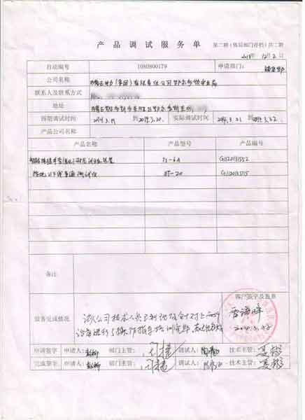 2014-03-21 內蒙古鄂爾多斯電業局進行調試服務,調試產品:CYJS-6A智能絕緣手套(靴)耐壓試驗裝置   CYDT-20接地引下線導通測試儀