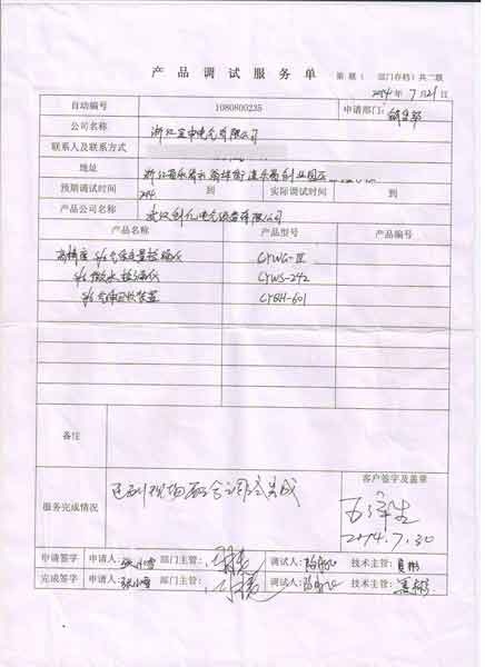2014-07-21 浙江寶申電氣進行調(diào)試服務,調(diào)試產(chǎn)品:CYWG-III 高精度SF6氣體定量檢漏儀 CYWS-242 SF6微水測量儀 CYQH-601 SF6氣體回收裝置