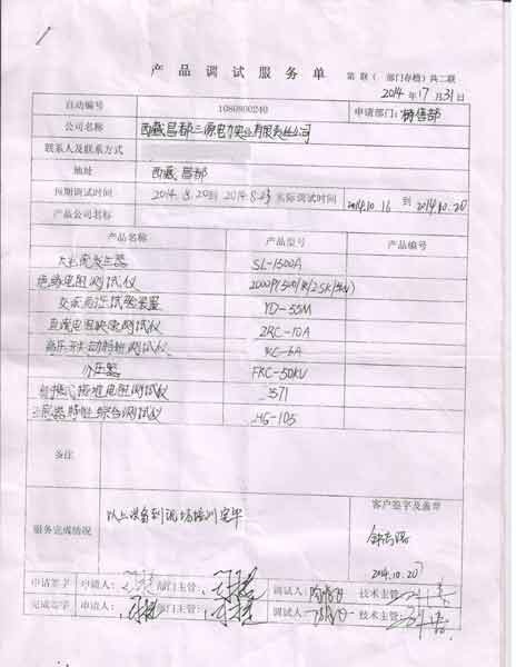 2014-10-20  石家莊誠峰熱電廠進行調試服務,調試產品:
