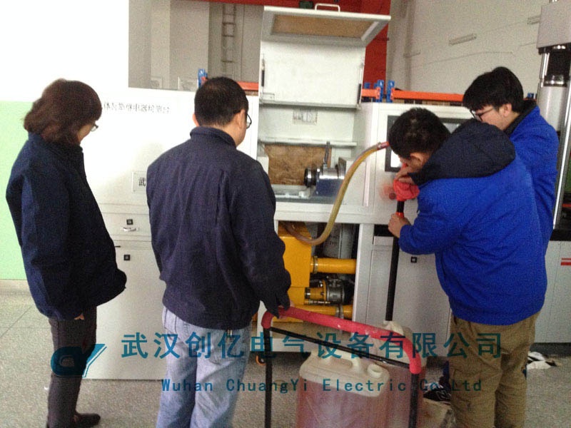 本次調試的產品主要是瓦斯繼電器檢驗臺。本產品系統(tǒng)采用單管道流量計直接測量方法,可分別對φ25、φ50、φ80毫米管徑的國內外氣體繼電器(例如:國產QJ,進口德國EMB、MR、意大利COMEM等系列)的流速、容積和密封進行檢測。此次采用的被試品是長江電力原有的一臺瓦斯繼電器,對其故障進行檢驗。在調試過程中,我司技術人員向其工作人員展示了如何接線及整個試驗的操作過程,并耐心講解了儀器的工作原理,以及如何分析試驗結果判斷被試品的問題所在。