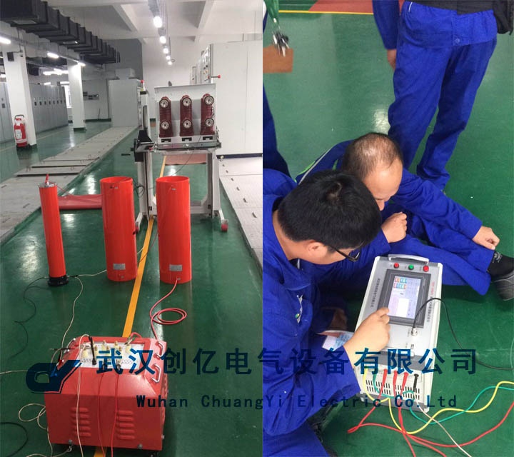 我司技術(shù)人員抵達客戶處后,首先進行試驗內(nèi)容和工作原理的講解,然后進行現(xiàn)場試驗。先斷開高壓開關(guān)電源,斷開高壓開關(guān)電源,抽出高開本體就位,保留足夠安全距離,被試品可靠接地;配合被試品規(guī)格,計算出試驗電壓電流、被試品電容和電抗器容量、大概諧振頻率,繼而推算電抗器的使用節(jié)數(shù)和接線方式,本試驗采用4節(jié)電抗器串聯(lián)接線,變頻電源電壓檔3KV;進行試驗,在試驗過程中,指導(dǎo)客戶操作并對每個界面進行講解,最后強調(diào)注意事項。