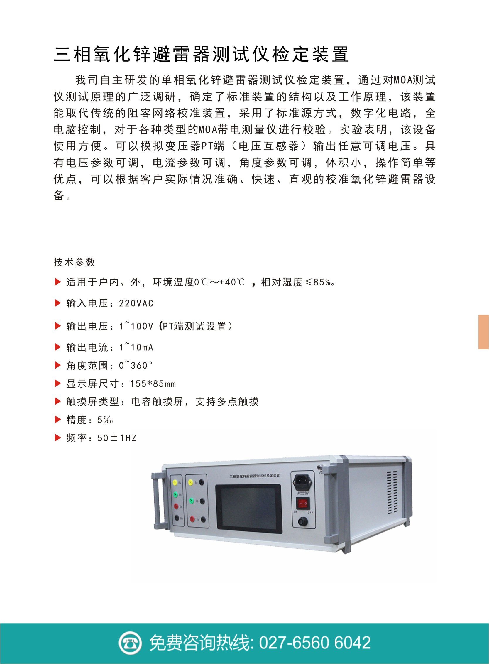 本裝置可模擬輸出氧化鋅避雷器運(yùn)行現(xiàn)場(chǎng)所需要的交流電壓和漏電流信號(hào),主要用來(lái)檢定單相或三相(氧化鋅避雷器測(cè)試儀)在線測(cè)量時(shí)的準(zhǔn)確性和穩(wěn)定性,也可以在其他場(chǎng)合作為三相交流信號(hào)數(shù)控源使用。