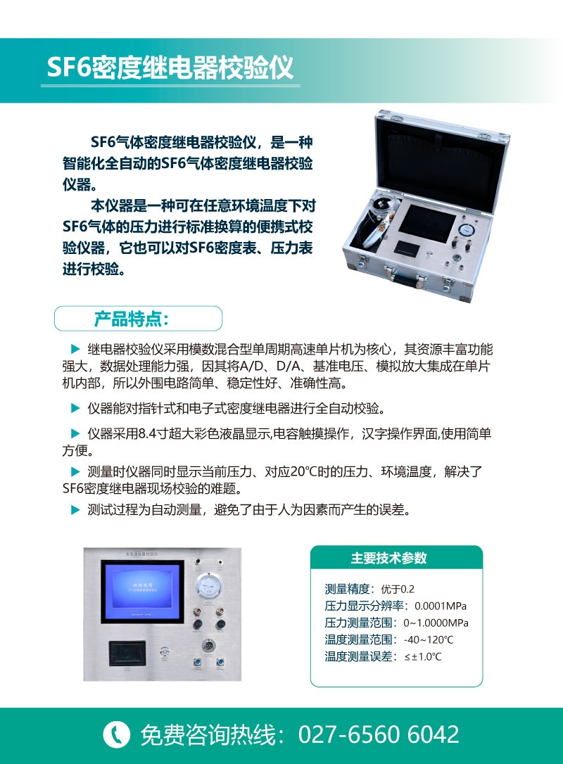 本儀器是一種可在任意環(huán)境溫度下對SF6氣體的壓力進(jìn)行標(biāo)準(zhǔn)換算的便攜式校驗(yàn)儀器,它也可以對SF6密度表、壓力表進(jìn)行校驗(yàn)。